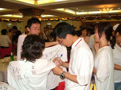 我们作为夏令营活动中的一员,在短短三天、四天的活动时间里,深深地感受到了:血浓于水,海峡两岸一家亲。夏令营闭营晚会上,台湾的陈锦赐院长那句“海峡两岸人民永远手拉手、心连心!21世纪将是我们中国人的世纪!”至今仍回荡在我的耳边。而由陈院长等海峡两岸师生共同合唱的《期待再相会》、《明天会更好》更是唱出了我们广大营员们的心声。