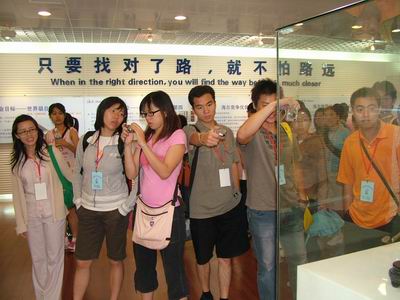 “洗衣机可以不用洗衣粉就能洗衣服?”当听到讲解员介绍海尔的无磷环保洗衣机时,许多营员们都有这样的疑问。而在看完洗衣机的工作原理演示之后,大家顿时觉得豁然开朗。“啊,什么时候我家也能有这样的环保洗衣机就好了。”一位台湾大学的朋友说道。 “海尔的科技创新真的很厉害。我们今天又学到了好多的知识啊!”许多营员们在参观了海尔集团后,都为海尔的科技创新能力所折服,为海尔浓厚的企业文化所深深吸引。 夏令营期间,我们一起参观了我校及海大校园、青岛啤酒博物馆、海尔科技馆和海尔集团,并游览了五四广场、八大关、崂山等青岛著名旅游景点,从中我们学到了不少的知识。台湾大学生们不时对我校和谐美好的育人环境、对青岛优美的自然环境、青岛企业科技的发展速度发出啧啧称赞。