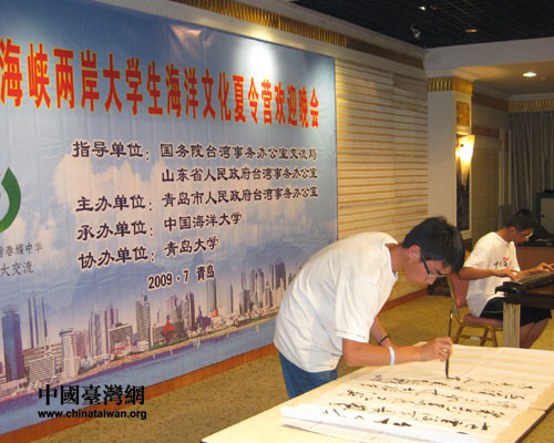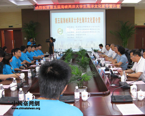 开营仪式由中国海洋大学台湾事务办公室主任戴华教授主持。会上宣读了山东省人民政府台湾事务办公室为夏令营发来的贺信。青岛市人民政府台湾事务办公室刘建国助理巡视员致辞。他说,去年5月以来,两岸关系迎来了历史性的转折,出现了难得的发展机遇,在两岸同胞共同努力下,取得一系列重要成果和突破性进展。两岸关系步入了和平发展的轨道,展现出更为广阔的光明前景。不久前在长沙又成功举办了“第五届海峡两岸经贸文化论坛”,两岸代表经过深入研讨,达成了“共同建议”,建议共包括六个方面二十九条建议。其中,五个方面二十七条建议是直接针对推动和深化两岸文教交流与合作的。可见文教交流在两岸交流地位之重要,意义之重大。