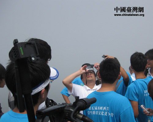 中国台湾网7月23日消息 7月22日上午,参加“第五届海峡两岸大学生海洋文化夏令营”活动的大学生畅游了代表青岛的百年历史的重要标志性建筑物和著名风景游览点、以风格各异的建筑群为主体,配以宁静宽阔的道路,阳春盛夏,花红似火;秋冬季节,霜染枫红,国内知名的度假胜地八大关、坐落于五四广场代表新世纪青岛的标志性雕塑之一“五月的风”、音乐广场等美丽的海滨风光;下午游览了道教丛林海上仙山—崂山,崂山是我国近海名山,海山毗连,雄奇秀美。同时,两岸学子们在栈桥共同观看了天文奇观“日全食”,大家纷纷拿起手中的相机和手机争相拍照留念,共同见证了这一难得一见的奇观。学子们不仅欣赏了青岛美丽的风光,而且品尝了青岛海鲜。