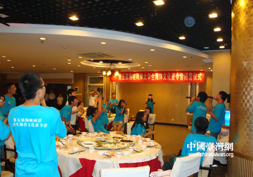 中国台湾网7月29日消息 7月25日晚,“第五届海峡两岸大学生海洋文化夏令营”闭营仪式在中国海洋大学学术交流中心隆重举行。来自青台两地的台湾海洋大学、成功大学、东南科技大学、中州技术学院、中国海洋大学、青岛大学等高校的50多名师生参加了闭营仪式。