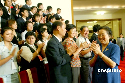 八月十七日,“首届两岸大学生领袖论坛”在北京人民代表大会隆重举行。全国人大常委会副委员长何鲁丽会见了出席此次论坛的全体与会者,并与大家合影留念。海峡两岸近八十所高校二百余名青年大学生将围绕“建立两岸青年互动机制的意义及途径”主题进行广泛深入地交流和探讨。论坛由中国宋庆龄基金会、中国国民党青年团、中华全国学生联合会共同主办。中新社发 张勤 摄