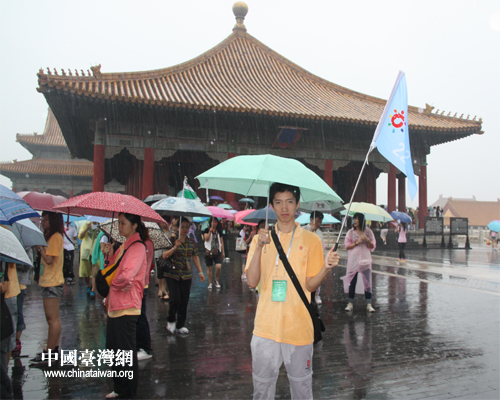 中国台湾网7月17日北京消息 突降的一场倾盆大雨并没有浇熄台胞青年们游览故宫的如火热情,今天一早,台胞青年千人夏令营的营员们便兴致勃勃地来到了故宫博物院参观游览。