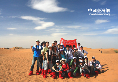 中国台湾网7月31日消息   7月24日,“希望牵两岸,青春耀中华——两岸万名青年大交流”宁夏分团夏令营的同学们来到神往已久的著名景区沙坡头。同学们亲眼目睹了这个神奇的地方,亲身感受了母亲河的雄伟壮观以及沙坡头的独特魅力。