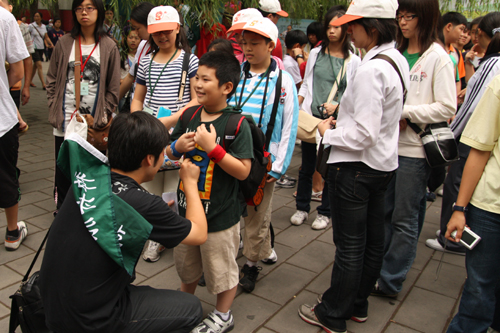 “台湾少年儿童北京参访团”今日在北京动物园合影留念。(中国台湾网 杨永青 摄)