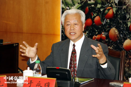 海峡两岸农业交流协会会长于永维总结发言,简报“海峡两岸农业合作研讨会”成果。(中国台湾网 钟宝华 摄)