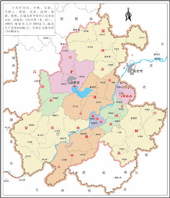 1、区域范围。皖江城市带依托长江这条黄金水道,包括合肥、芜湖、马鞍山、铜陵、安庆、池州、巢湖、滁州、宣城9市全境和六安市的舒城县、金安区共59个县(市、区)。土地面积7.6万平方公里,人口3058万人,2009年国内生产总值6600亿元,分别占全省的54%、45%和66%。