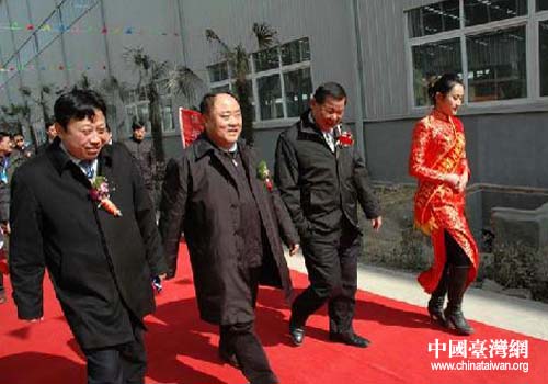 安徽省国资委主任许崇信(左二)、台资负责人梁石辉(左三)参加投产典礼(图片来源:淮北市台办)