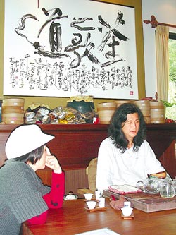 提倡“新茶道”的何在彬(右)吸引大陆游客来台追寻心灵之旅。