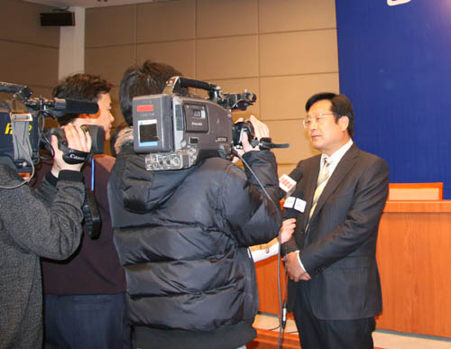 郑州市委常委、宣传部长、己丑年黄帝故里拜祖大典郑州市执委会常务副主任兼秘书长丁世显向来自国内外的各大媒体介绍大典筹备情况