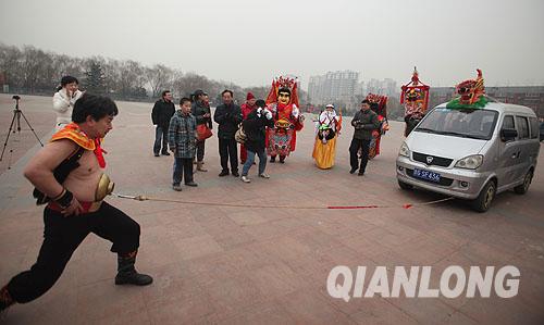 其中,天桥著名的“爬杆儿于”的后代于健表演的单耳拉汽车,在一只耳朵上栓上绳子,能拉动一辆面包车,堪称京城独一份儿。而卞辉表演的罗圈献彩,空手拿着两个腾编的笼屉,却能为您“献”出一桌的酒席。此外,京城快板名家李春华的徒弟、快板小神童安子元还将表演花唱绕口令,这个“我要上春晚”节目的“人气王”虽然才15岁,却将快板打得出神入化。
