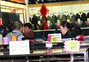 商贩们也开始忙碌了,柜台上摆满整齐的货物,供顾客进行选择。在鄂尔多斯市东胜区的大兴早市、民生广场、北国新天地等地方,可以随处看见人们大包小包的购买年货,过节的气氛浓郁而喜气。