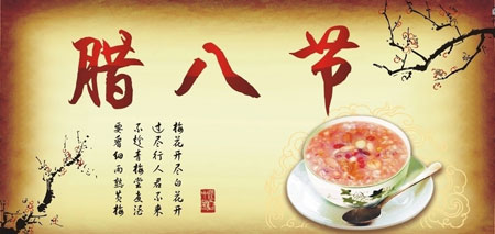 “腊八”是佛教的盛大节日。解放以前各地佛寺作浴佛会,举行诵经,并效仿释迦牟尼成道前,牧女献乳糜的传说故事,用香谷、 果实等煮粥供佛,称“腊八粥”。并将腊八粥赠送给门徒及善男信女们,以后便在民间相沿成俗。据说有的寺院于腊月初八以前由僧人手持钵盂,沿街化缘,将收集来的米、栗、枣、果仁等材 料煮成腊八粥散发给穷人。传说吃了以后可以得到佛祖的保佑, 所以穷人把它叫做“佛粥”。南宋陆游诗云:“今朝佛粥更相馈, 反觉江村节物新。”据说杭州名刹天宁寺内有储藏剩饭的“栈饭楼”平时寺僧每日把剩饭晒干,积一年的余粮,到腊月初八煮成腊八粥分赠信徒,称为“福寿粥”“福德粥”意思是说吃了以后可以增福增寿。可见当时各寺僧爱惜粮食之美德。