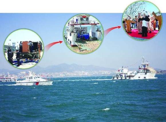 8艘船艇组成一个迎接编队,送来自台湾的岛宝两只梅花鹿“繁星”和“点点”、两只长鬃山羊“喜羊羊”和“乐羊羊”上刘公岛新居,这是刘公岛16日迎接台湾梅花鹿、长鬃山羊的既定方案细节。11日,为迎接来自台湾的长鬃山羊和梅花鹿,刘公岛方面进行了第二次实地全程全环节演练。