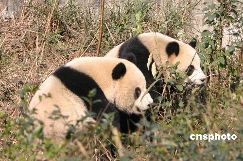 赠台大熊猫“团团”“圆圆”通过长期同居生活,它俩更加恩爱,经历了地震后感情更加如胶似漆,谁也离不开谁。图为12月中旬,“团团”“圆圆”在一起玩耍,两小无猜,憨态可爱。 中新社发 霍潺 摄