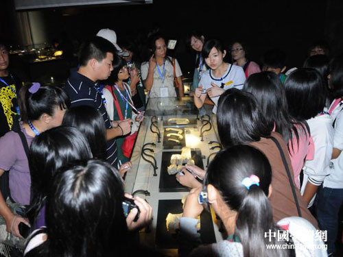 台湾学生在金沙遗址博物馆内仔细聆听解说员介绍。图片来源:四川省台办