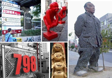 798艺术特区位于北京市中心东北角的朝阳区,现在北京旅游界打出的新口号是“早上到长城,下午去798,晚上吃烤鸭”。现在的798聚集着近两百家画廊和艺术家的工作室,展现出北京艺术交易市场的热络情形。在北京只要是搞艺术的,或者是喜欢艺术的,一定都知道798这个地方。之所以叫798,那是因为这里原本是一个工厂,798是他的代号,可是工厂经营不善倒闭之后,就有一些艺术家进来这里发表作品。后来越来越多的艺术家进来,798逐渐成为一个艺术特区。而不少台湾的艺术家和画廊也来到了798拓展市场。