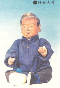 当时拴娃娃有两种形式:一是较富裕的人家的妇女多由道士陪伴,在众多的泥娃娃中选一个拴回家,同时留下为数可观的香资。二是生活较贫穷的人家则要背着道士悄悄地偷一个揣在怀里带回家。有钱也好,无钱也罢,道士只是睁一眼闭一眼。因此,这种风俗也叫“偷娃娃”。无论采取哪一种方式,人们在拴娃娃时都要默念提前为娃娃起的乳名,说:“XX,跟妈妈(或者是奶奶、姥姥)回家吧!”带回家后将小泥娃娃放在卧室内炕角边0,不能压着、磕着、碰着,也不能晾着,要用红布盖好。一旦妇女怀孕生下孩子后,方可将小泥娃娃拿出来,先得去天后宫还愿,即事先要在洗娃娃庄塑九十九个同样大小的小泥娃娃送还给送子娘娘像前,然后将自己拴走的小泥娃娃重新加泥塑成更大一些的,带回家中并在神佛龛旁边供养起来,将其视为自己的长子,而自己亲生的儿女则要排行老二。因此泥娃娃也称“娃娃大哥”或“娃娃哥”。每天吃饭时,做家长的还要在娃娃大哥的像前放置食物碗筷,年节时还要为其添置新衣服。而且每年还再到洗娃娃庄去“洗”一次娃娃,即为塑像重新加大,视为长了一岁。年复一年,娃娃大哥的形象从穿兜兜的小儿一直要“长”到留胡须的老者。与此同时,随着其真弟妹的长大,成家立业,生儿育女,娃娃大哥的辈份也随之增长,由娃娃大哥升为娃娃大爷、娃娃大舅、娃娃爷爷、直至太爷……倘若父母相继亡故,娃娃大哥要由真弟弟一代一代地传下去,永远供养着,因为人们认为所有的子孩都是由“他”带来的。