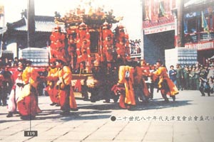 另外,还有就在清康熙三十一年(公元1691年),“圣祖幸天津谒天后宫”时,民间作百戏以献神,又籍此以娱帝,故有“皇会”之称。