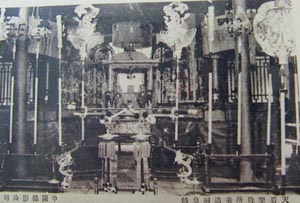 另外,天津的妓女来天后宫的祈祷也曾独成一景。当时,除农历初一、十五外,每到腊月大年三十夜里,便是妓女到天后宫叩拜神灵的日子。民国二十年(公元1931年)出版的《天津志略》中有“旧历元旦,各娼妓祝祷于此,粉红黛绿,满院光辉”的记截。对妓女来此烧香还有不成文的规定,在时间上要求即在天明前必须离开天后宫。在穿着上也有定例:二、三等妓院的妓女们,要穿上红袄裤,蹬上红锈鞋,套上红裙子,披上红斗篷,围上红围脖,别上红绒花,浑身上下用红颜色装扮一新,有文人戏称之为“满堂红”。当然,由于社会的黑暗,妓女们始终生活在社会最底层,直到新中国成立。