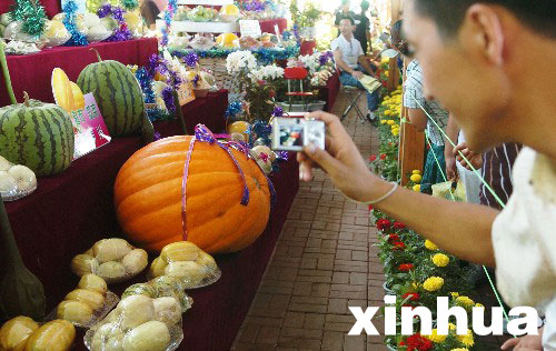 8月15日,一位参观者在植物展区拍摄展品。当日,为期7天的第六届中国长春国际农业食品博览(交易)会在吉林长春市拉开帷幕,此次博览会将推出现代农业展、科普大集、良种良法推介、农业机械及食品加工机械展、农民新居及农村能源环保项目展等丰富多彩的活动。新华社记者 徐家军 摄
