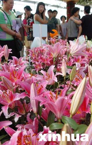 8月15日,观众在植物展区参观花卉。当日,为期7天的第六届中国长春国际农业食品博览(交易)会在吉林省长春市拉开帷幕,此次博览会将推出现代农业展、科普大集、良种良法推介、农业机械及食品加工机械展、农民新居及农村能源环保项目展等丰富多彩的活动。新华社记者 徐家军 摄