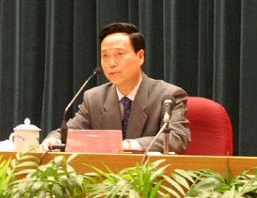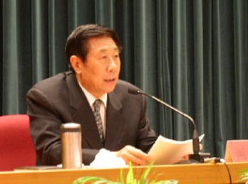 全国人大法制委员会副主任委员、全国人大常委会法制工作委员会主任胡康生作中心发言