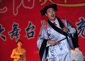 作为当晚的压轴节目,小沈阳是最后一个登场的二人转男演员。他一亮相就得到了在场所有观众的热烈掌声,面对南充热情的观众,小沈阳也演得卖力,虽然没有在舞台上翻滚,但却用他拿手的模仿,演唱了刀郎版的《怀念战友》和歌曲《死了都要爱》。节目最后,他还穿上古装饰演《倩女幽魂》中的宁采臣,“PiaPia”地跑下舞台邀请了一位王姓女观众饰演小倩,将全场观众逗得哈哈大笑,现场气氛推向了最高潮。