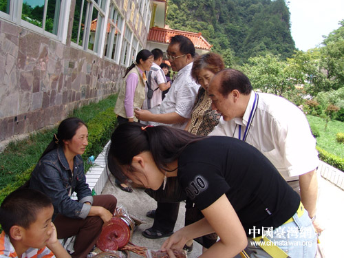 新加坡道教协会会长李至旺和神农架卖药材的孩子们亲切聊天
