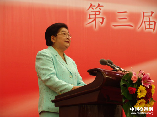 中国台湾网06年9月19日北京消息 以“姐妹携手、共促发展”为主题的第三届海峡两岸妇女发展交流研讨会开幕式今日上午在北京人民大会堂举行。全国妇联主席顾秀莲在开幕式上表示:两岸姐妹应以弘扬中华文化为使命、以合作共赢为目标、以推进性别平等为己任、携手共促妇女发展,为祖国的和平稳定与民族的伟大复兴贡献力量。