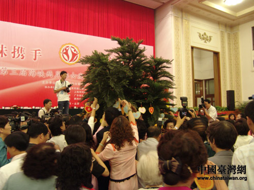 每位与会代表在心型精美卡片上写下内心真挚的祝福,虔诚挂在会场的五棵“同心树”上,表达她们对此次活动的衷心祝愿和对两岸未来的美好期许,并现场祈愿梦想成真。