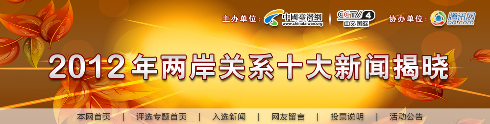 中国台湾网自2005年推出“两岸关系十大新闻评选”,至今已经连续举办了7届。每一年我们都同专家学者与广大关注两岸关系发展的网友一道,评选出当年最具影响力的两岸关系十大新闻事件。同时,也以此为线索回顾...