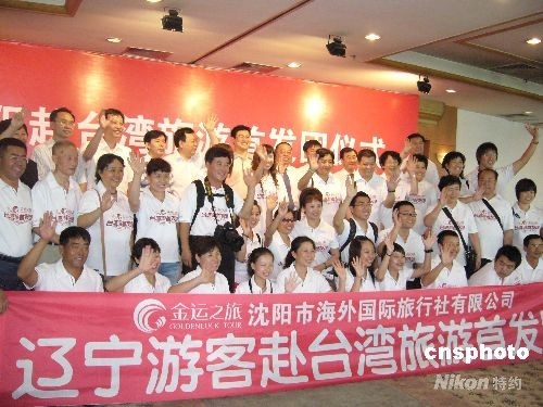 7月25日下午2时,由沈阳市海外国际旅行社组织的辽宁游客赴台湾旅游首发团启程,该团也是东北赴台旅游首发团。 中新社发 沈殿成 摄