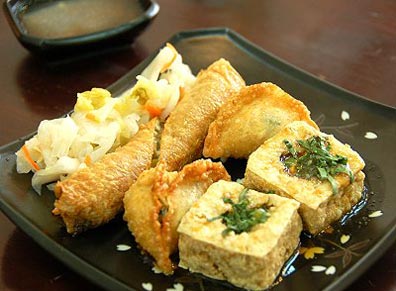 原本就是臭豆腐专卖店,老板娘突发奇想,用臭豆腐入菜做饺子,也做腐皮卷,一推出大受欢迎,业绩拉抬了三成,因为讲求新鲜,都得当天制作,复杂的美味,抓住客人的胃,也难怪店一开门,客人是一个接着一个上门。