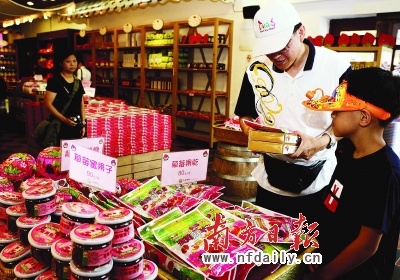 台湾苗栗县草莓制品受到四方游客的青睐。南方日报特派记者 陈健聪 摄