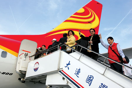 据了解,大连至台北直航客运包机航班由海南航空公司和台湾复兴航空公司运营。海南航空公司开通大连到台北航班,每周六一班,昨日首航;台湾复兴航空公司开通台北到大连航班,每周日一班,于12月21日首航。