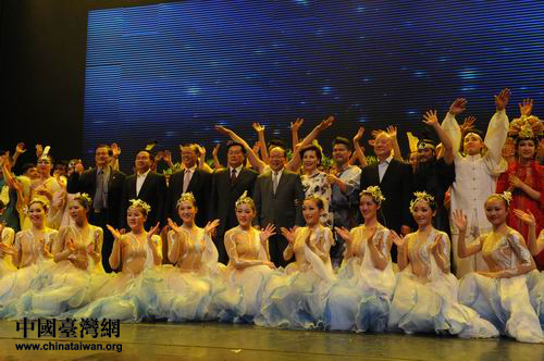 演出结束后,两岸的嘉宾与演员合影。(湖北省台办 陆胜 摄)