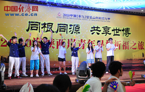 这是“同根同源共享世博” 2010(奉化)海峡两岸青年寻根祈福之旅活动的内容之一。作为“2010中国(奉化)雪窦山弥勒文化节”的重要组成部分,2010(奉化)海峡两岸青年寻根祈福之旅丰富多彩。7月16日晚上,百余名两岸青年齐赴雪窦山参加弥勒文化节活动,观看了精彩隆重的开幕式暨“应梦雪窦”大型梵呗音乐盛典;7月17日上午,先后参观露天弥勒大佛景区、蒋氏遗迹、滕头村等,许多台湾青年对全球坐姿最高的铜制露天弥勒大佛、生态环境优美的滕头村和修缮完好的蒋氏遗迹赞叹不已。两岸青年还在大佛景区内共同种植了友谊树,并把各自写好的心愿放进许愿瓶内挂在了树上,共同祈福祖国繁荣昌盛。