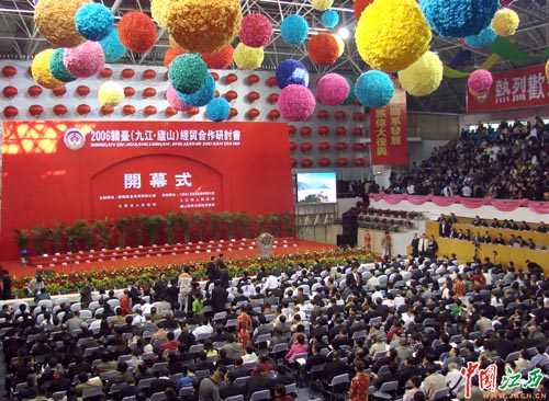 9月23日,2006赣台(九江·庐山)经贸合作研讨会开幕,1700多名台湾知名人士、台湾工商企业界人士参加了研讨会。(杨冗晟 摄)