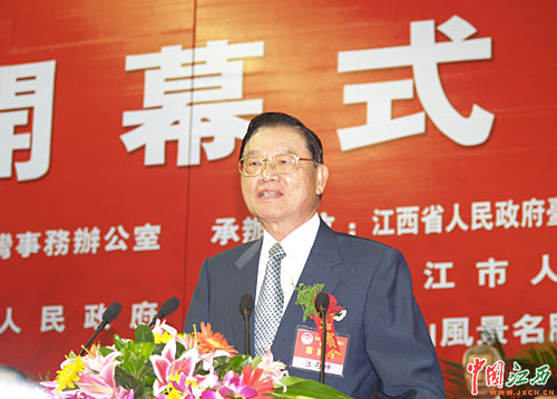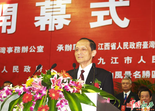 中国国民党副主席江丙坤在2006赣台(九江·庐山)经贸合作研讨会开幕式上致辞。(杨冗晟 摄)