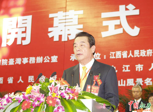 江西省省长黄智权主持2006赣台(九江·庐山)经贸合作研讨会开幕式。(杨冗晟 摄)