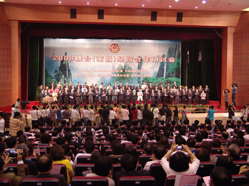 两岸同胞一家亲,赣台携手谋双赢。9月22日上午,以“同胞情、一家亲、叙友谊、促发展”为主题的2008赣台(南昌)经贸合作研讨会在南昌红谷滩会议中心隆重开幕。