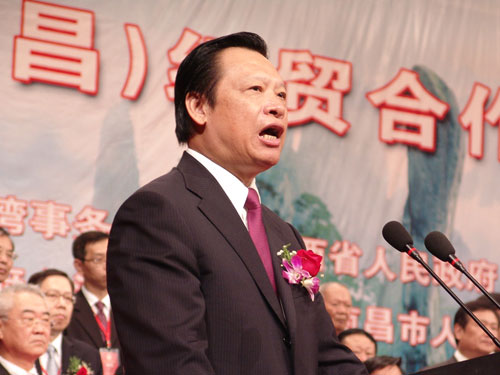 吴新雄指出,当前我们经济发展面临着严峻的国际形势,赣台两地进一步加强经贸合作显得尤为重要和必要。今年4月,胡锦涛总书记提出了“建立互信、搁置争议、求同存异、共创双赢”的“十六字方针”,为开创两岸关系和平发展新局面提供了重要保障。台湾地区出现了加强两岸交流合作的重大变化,为进一步加强赣台经贸合作创造了极为有利的条件和机遇。这些年来,赣台两地通过共同努力,友好往来日益密切,经贸合作不断加强,给两地同胞带来了切实的利益。截至今年上半年,江西累计批准合同台资项目2256个,合同台资额85亿美元,实际利用台资32亿美元。台湾已经成为江西利用外资的主要来源地,许多在赣台资企业也获得了丰厚的回报。现在我们又设立了5个台资企业转移承接基地和5个台商创业园。这为进一步加强赣台经贸合作奠定了牢固的基础,创造了良好的条件。