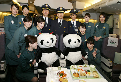 台湾长荣航空22日派出波音客货机与经验丰富的机组员,启程前往四川接回2只大熊猫。(“中央社”图)