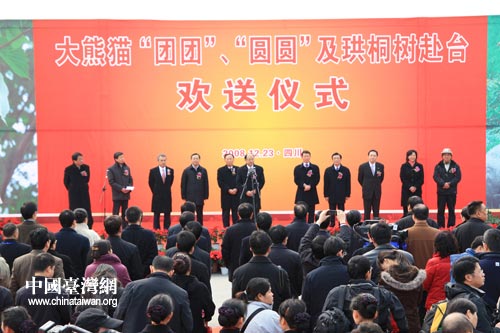 12月23日,成都双流机场为赠台大熊猫和珙桐树苗举行欢送仪式,这是欢送仪式现场。中国台湾网 田云鹏 摄