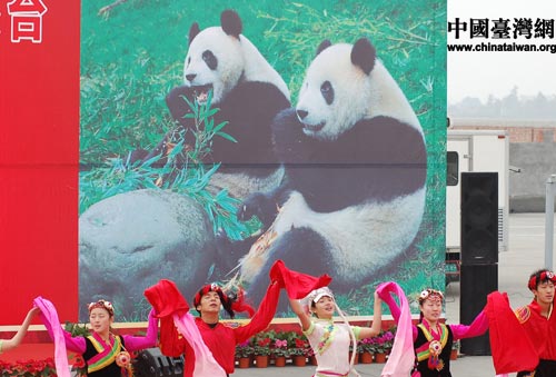 12月23日,成都双流机场为赠台大熊猫和珙桐树苗举行欢送仪式,这是欢送仪式开始前现场表演少数民族歌舞。中国台湾网 田云鹏 摄