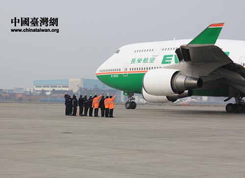 12月23日,成都双流机场,搭载赠台大熊猫“团团”、“圆圆”和珙桐树苗的台湾长荣专机准备起飞。中国台湾网 田云鹏 摄