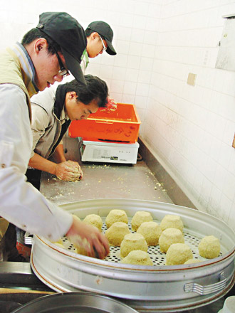 饲养员陈屹彪加班苦练做窝窝头。图:台湾《联合报》