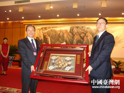 图:中国国民党台南市参访团赠中共深圳市委镶有金龙图案的“互惠双赢”匾