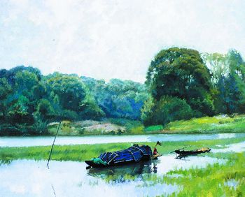 斜阳(萧沛苍简介 湖南湘乡人,1942年生。著名油画家,湖南省优秀出版专家。油画以风景见长。曾任湖南美术出版社副社长、社长;湖南省美术家协会第六届副主席,第七届荣誉副主席等职。) 来源:新华网湖南频道